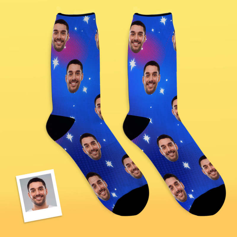 Custom Face Socks Add Pictures and Name Star Breathable Soft Socks