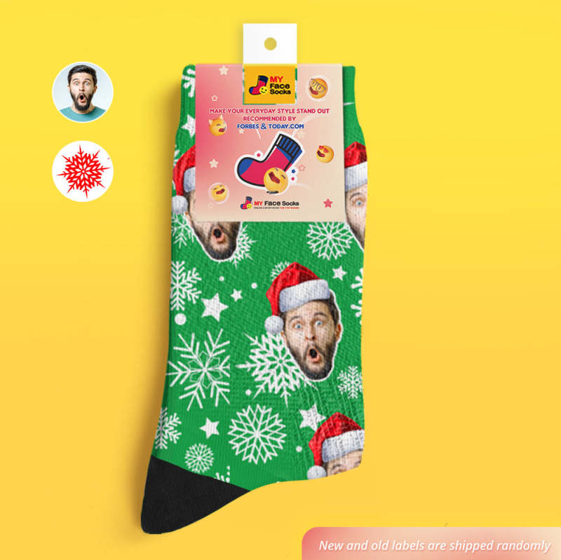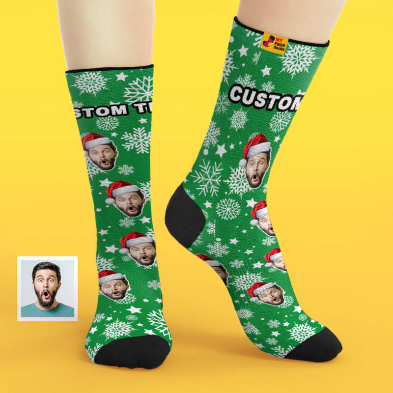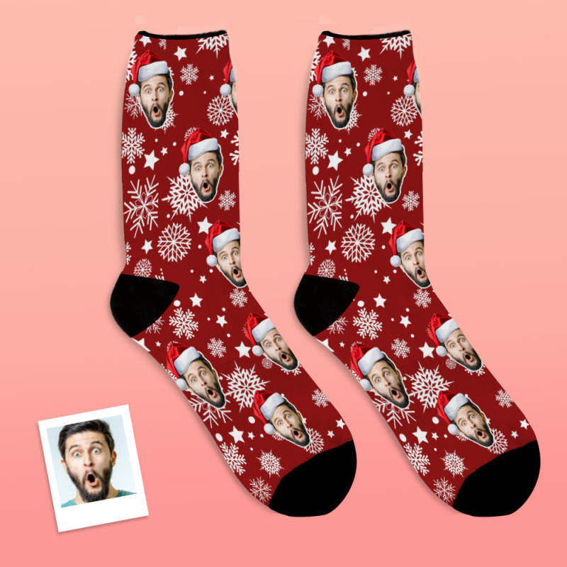 Custom Face Socks Add Pictures Christmas Socks - Santa Hat