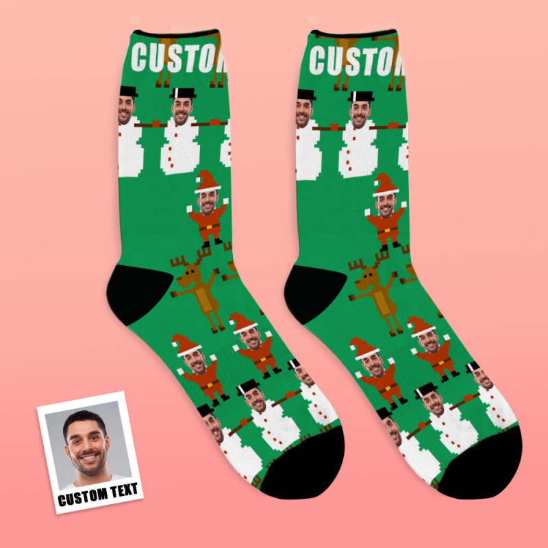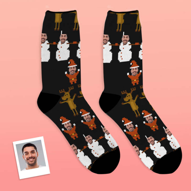 Custom Face Socks Breathable Photo Socks Christmas Pixel Pattern Socks