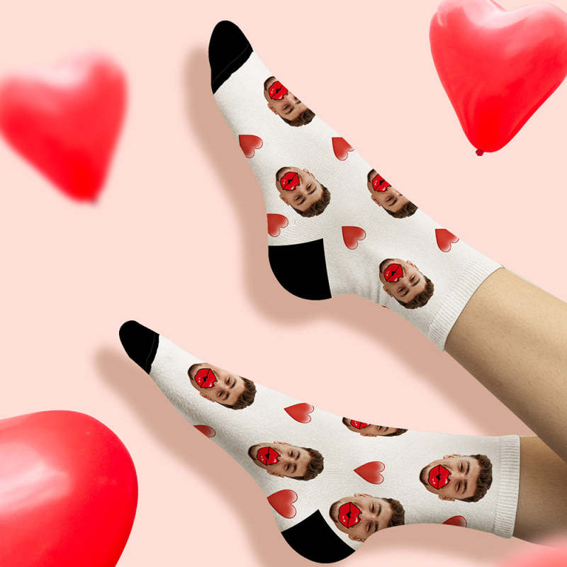 Custom Face Socks Heart and Red Lips Socks Valentine's Day Gift