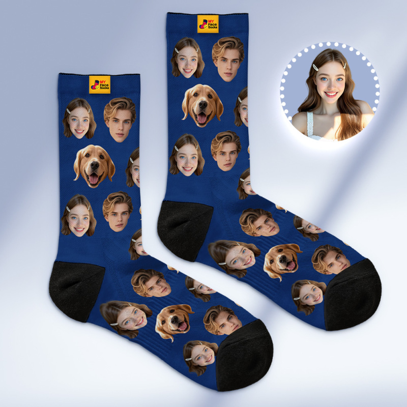 Custom Face Socks Personalized Socks with Faces Photo Blue Funny Gift Photo Family Socks