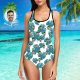 Custom Face Swimwear Women's Photo Slip One Piece Swimsuit Gift For Her - Large Leaves