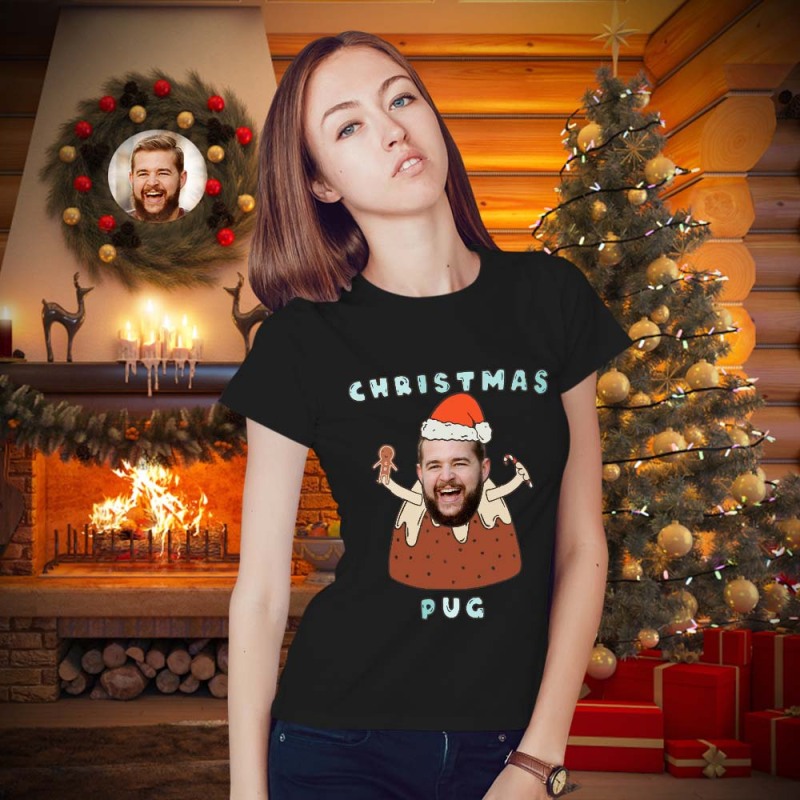 Custom Face T-shirt Personalized Photo Funny T-shirt Christmas Gift For Women And Men - Pug