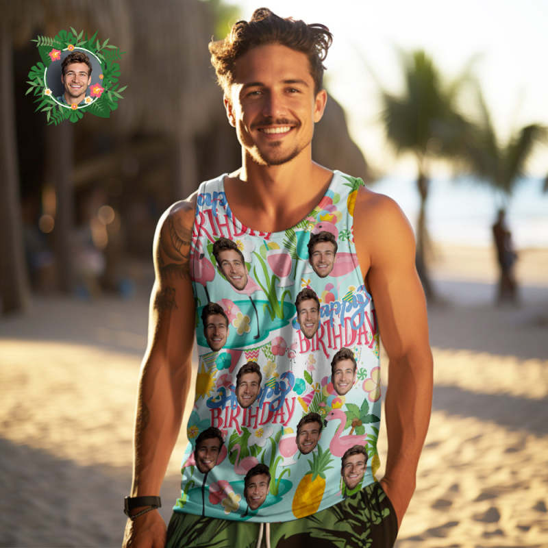 Custom Face Tank Tops Men's Sleeveless Shirt Happy Birthday