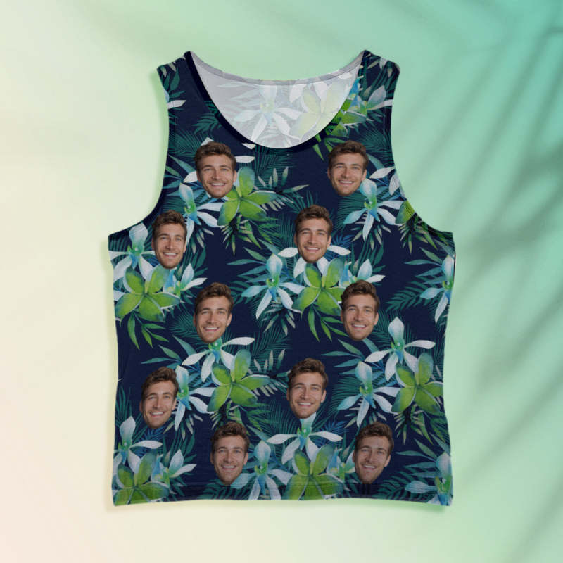 Custom Face Tank Tops Men's Sleeveless Shirt Leaves Petal