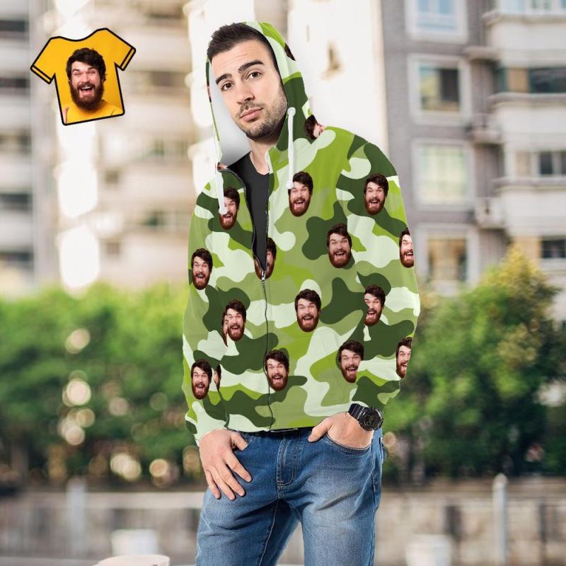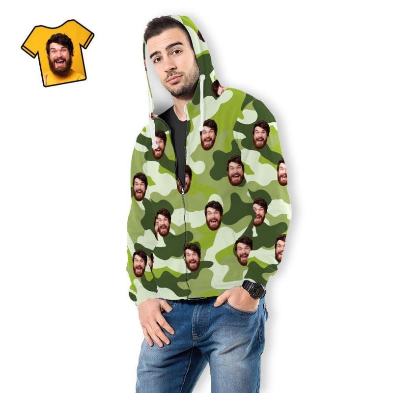 Custom Face Unisex Hoodie Casual Printed Auqamarin Camouflage