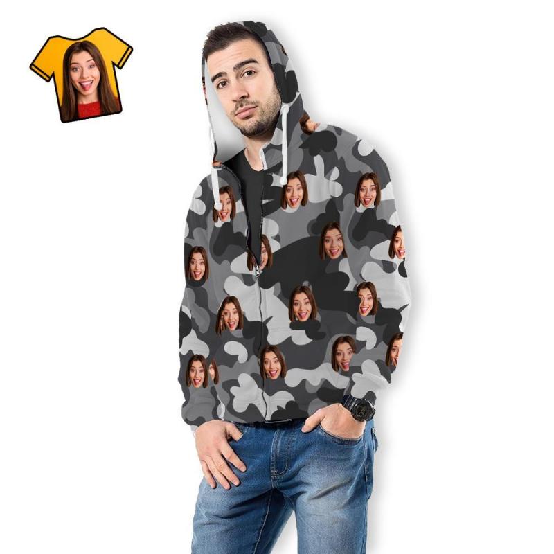 Custom Face Unisex Hoodie Casual Printed Dark Grey Camouflage