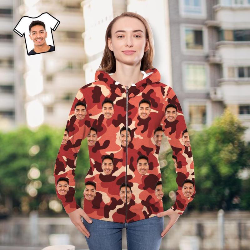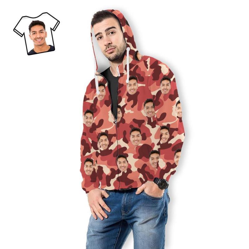 Custom Face Unisex Hoodie Casual Printed Light Coral Camouflage