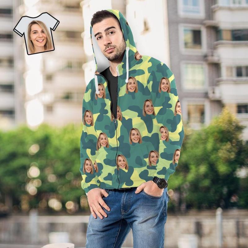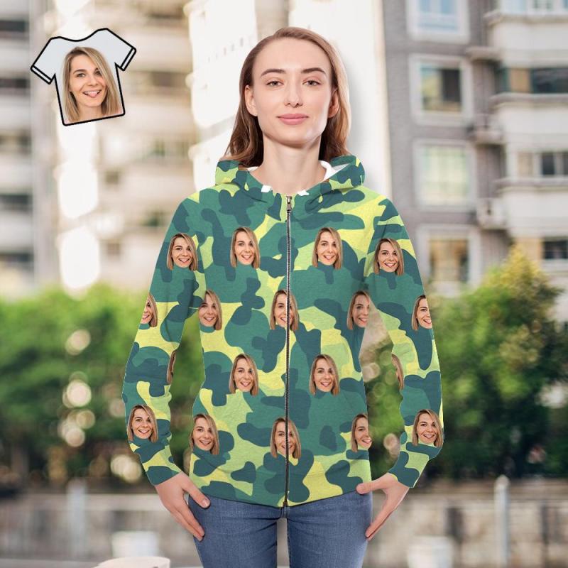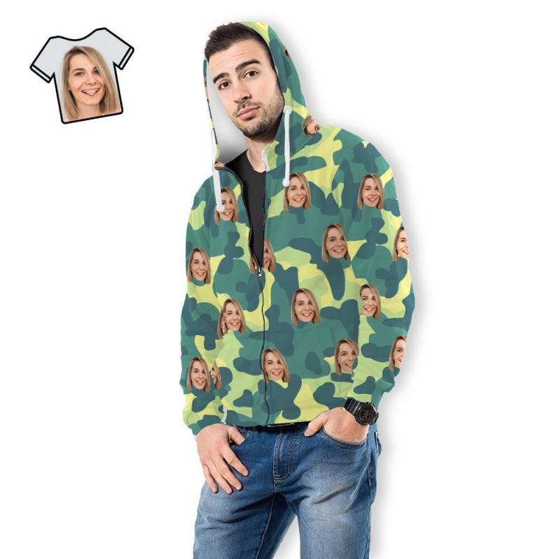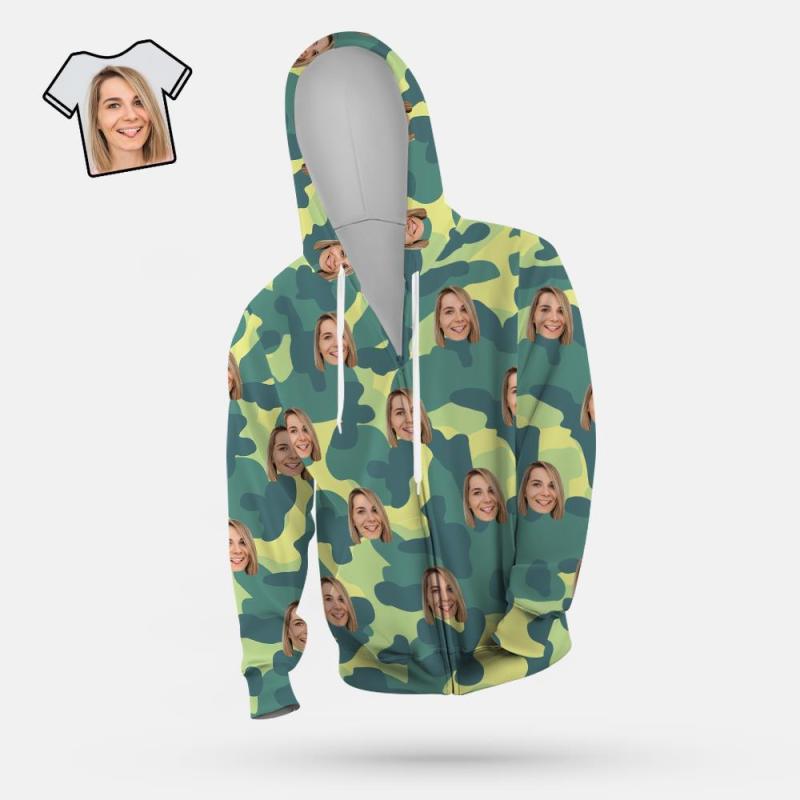Custom Face Unisex Hoodie Casual Printed Light Green Camouflage