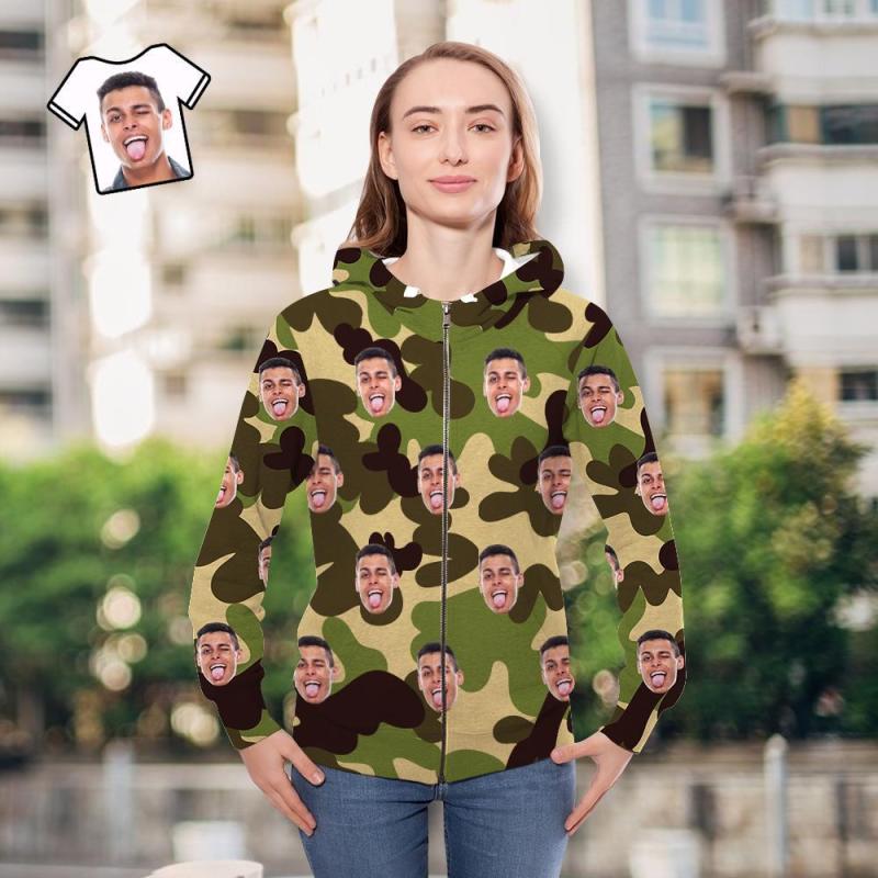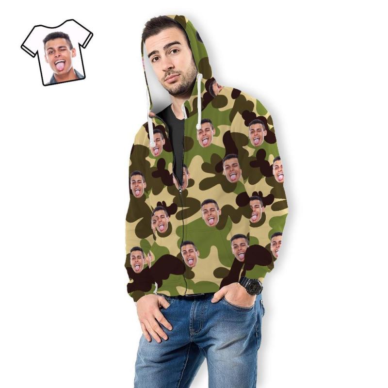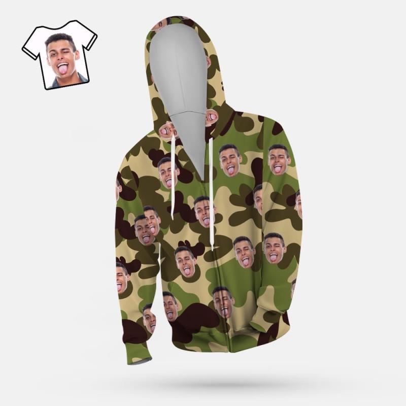 Custom Face Unisex Hoodie Casual Printed Olive Drab Camouflage