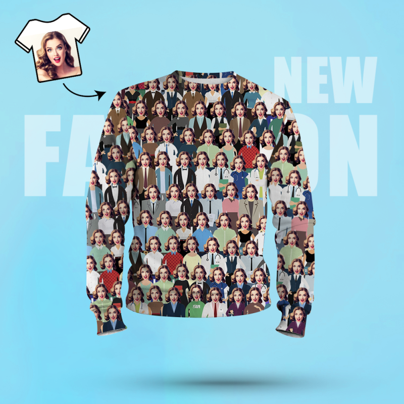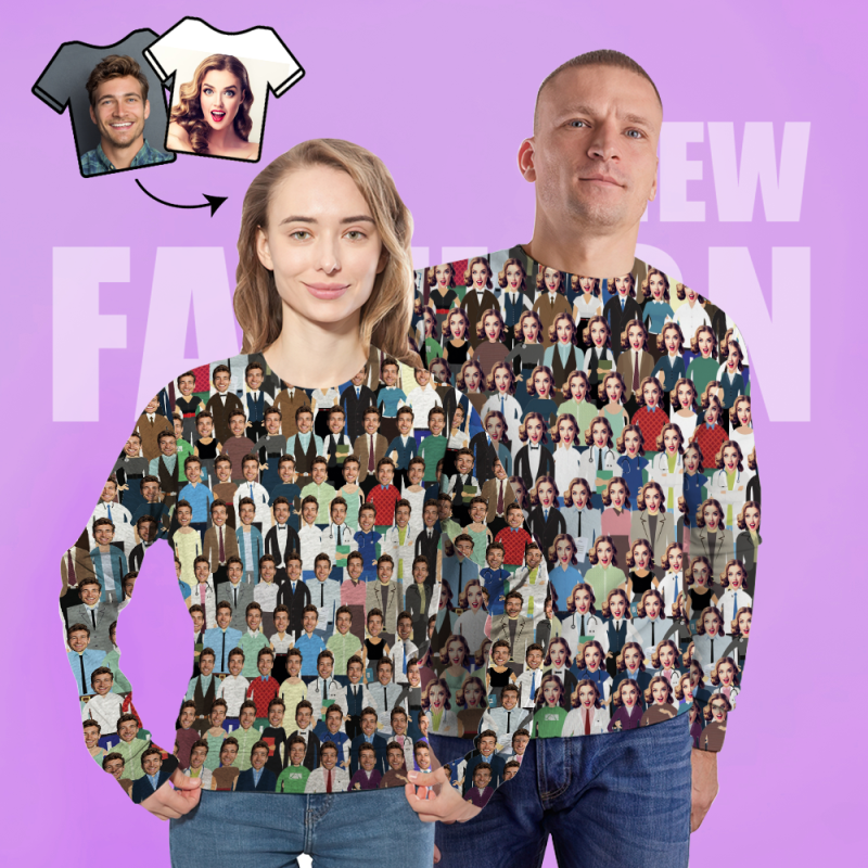 Custom Face Unisex Sweatshirt Casual Printed Photo Crewneck Shirt For Men Women - Crowd