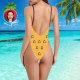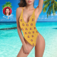 Custom Face V-Neck Bikini Women's Photo One Piece Swimsuit Women's Gifts - Avocado