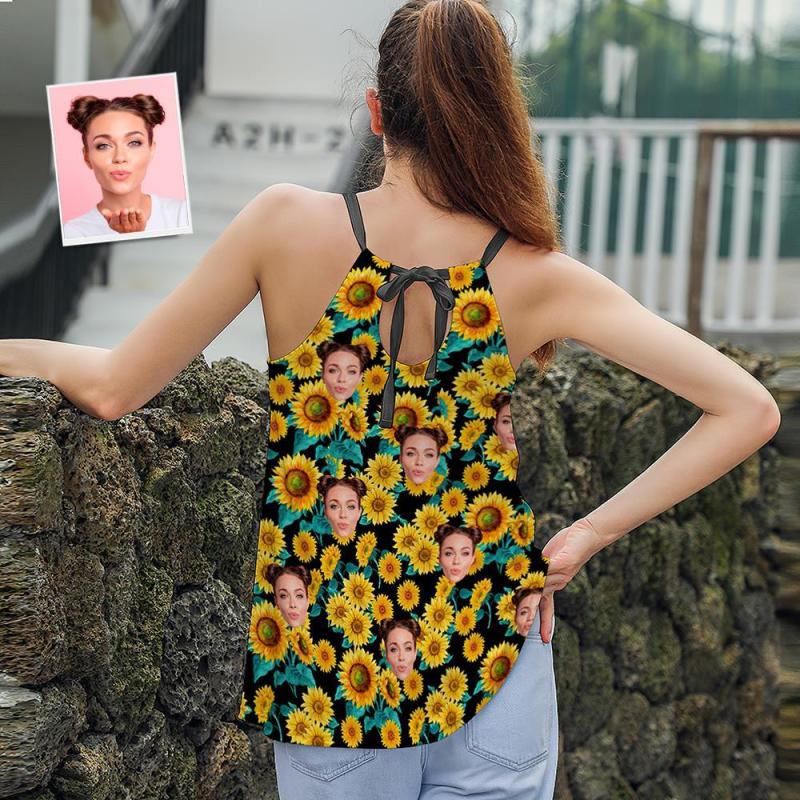 Custom Face Women's Strappy Camisoles Summer Sexy Loose Cute Tanks Tops - Sunflower