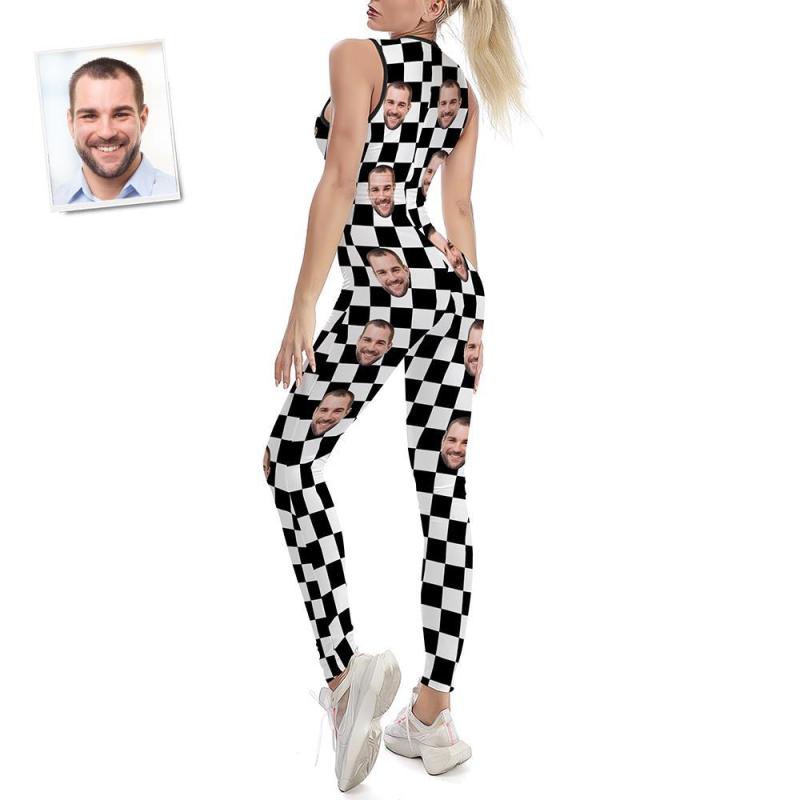 Custom Face Women's Yoga Jumpsuit Stretch Yoga Gym Fitness Dancing Costume - 3d Grid