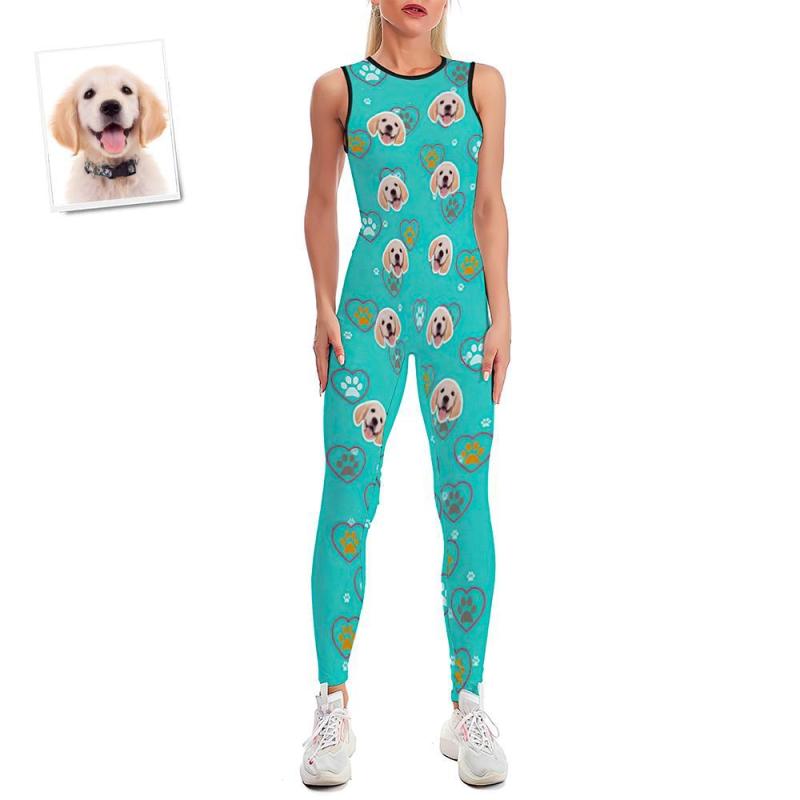 Custom Face Women's Yoga Jumpsuit Stretch Yoga Gym Fitness Dancing Costume - Pet Dog