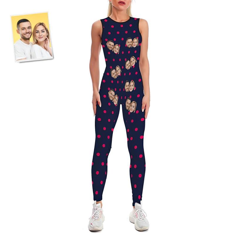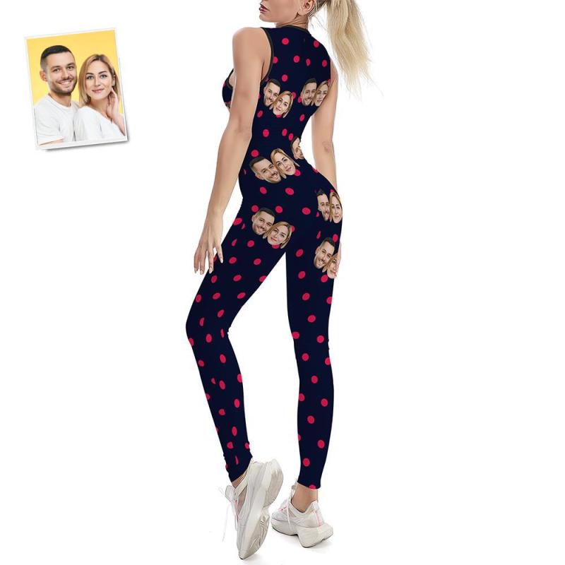 Custom Face Women's Yoga Jumpsuit Stretch Yoga Gym Fitness Dancing Costume - Polka