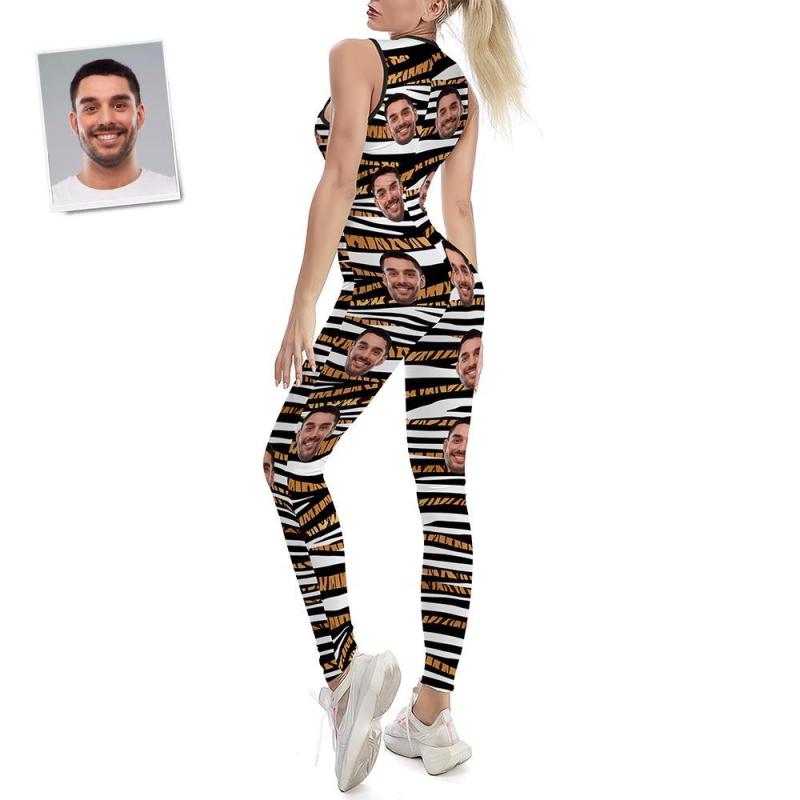 Custom Face Women's Yoga Jumpsuit Stretch Yoga Gym Fitness Dancing Costume - White Tiger