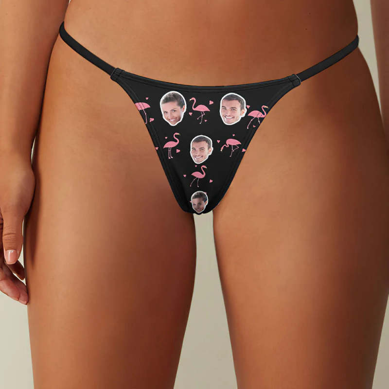 Custom Flamingo And Face On Women's Tanga Thong