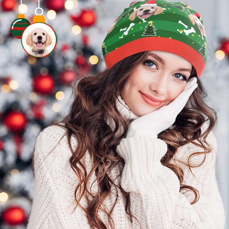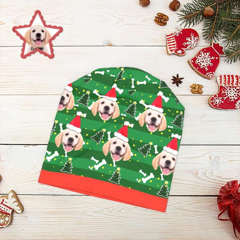 Custom Full Print Pullover Cap Personalized Photo Beanie Hats Christmas Gift for Her - Cute Dog