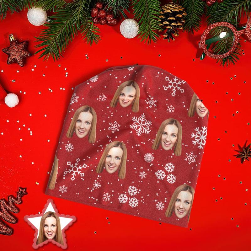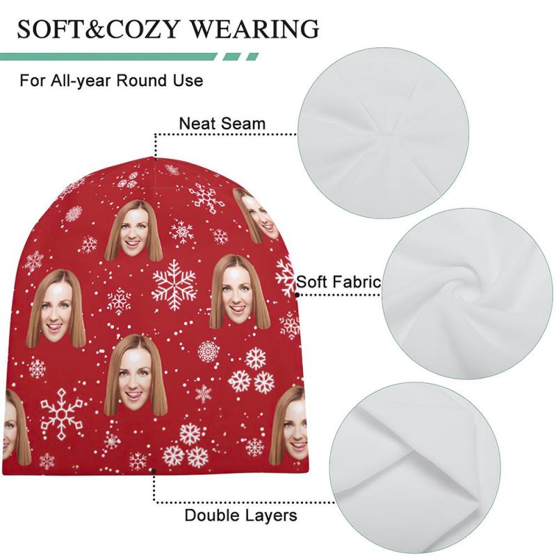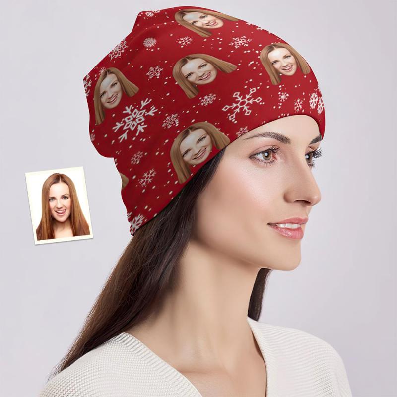 Custom Full Print Pullover Cap Personalized Photo Beanie Hats Christmas Gift for Her - Snowflake