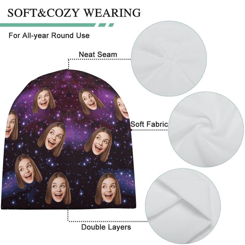 Custom Full Print Pullover Cap Personalized Photo Beanie Hats Gift for Her - Starry Sky