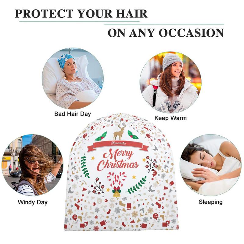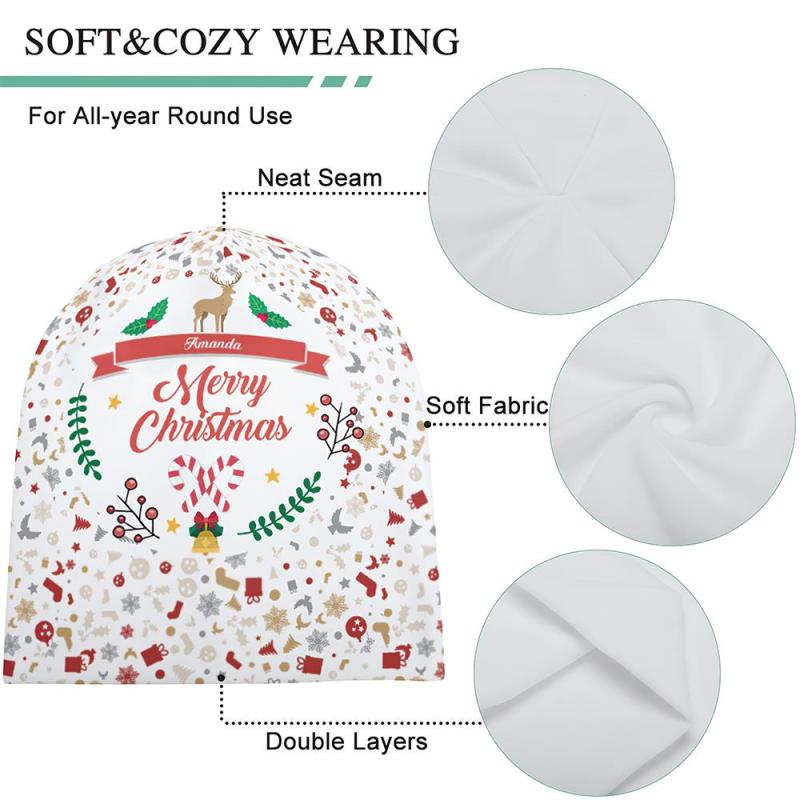 Custom Full Print Pullover Cap with Text Personalized Beanie Hats Christmas Gift for Her - Merry Chrstmas