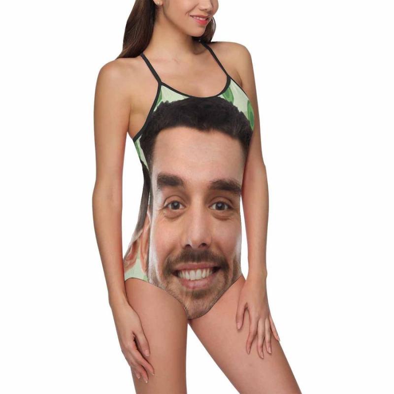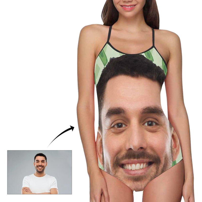 Custom Funny Face Green Background Women's Slip One Piece Swimsuit