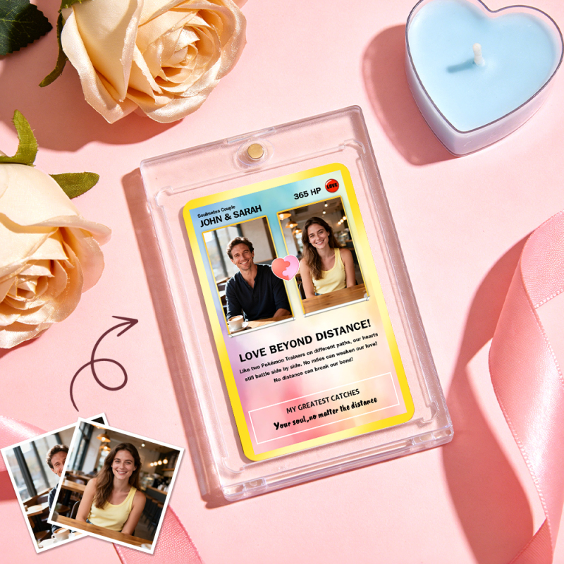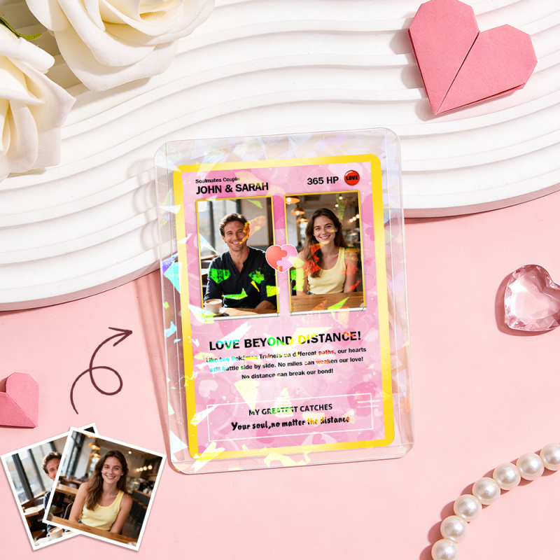 Custom Gift for Couples Photo and Text Card Personalized Anniversary Keepsake Card LOVE BEYOND DISTANCE Style Gift
