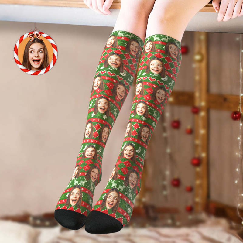 Custom Knee High Socks Personalized Face Christmas Socks Special Lines Add Pictrues
