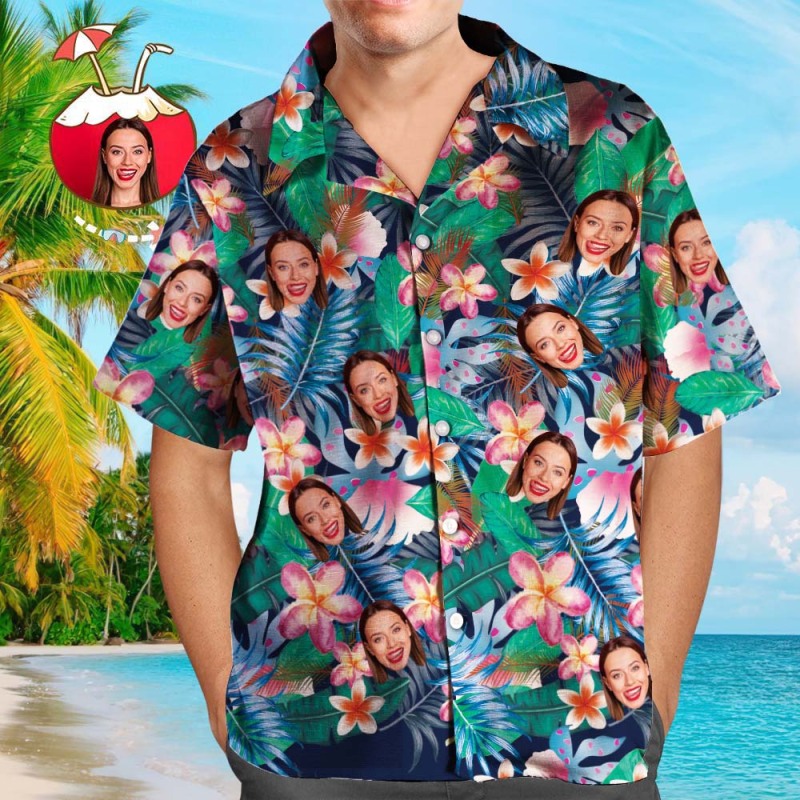 Custom Logo Hawaiian Shirts Colorful Flowers Personalized Aloha Beach Shirt For Men