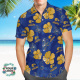 Custom Logo Hawaiian Shirts Colorful Leaves Aloha Beach Shirt Blue