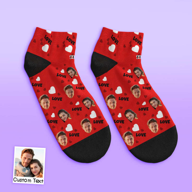 Custom Low Cut Ankle Face Socks For Family - Love