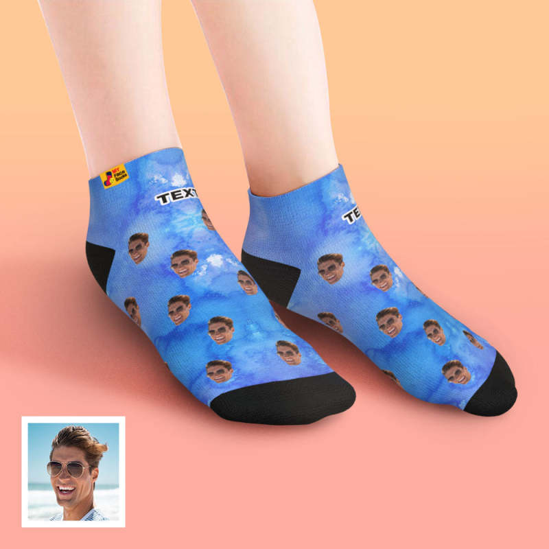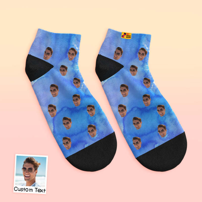 Custom Low cut Ankle Socks Personalized Face Socks Tie Dye Style