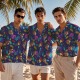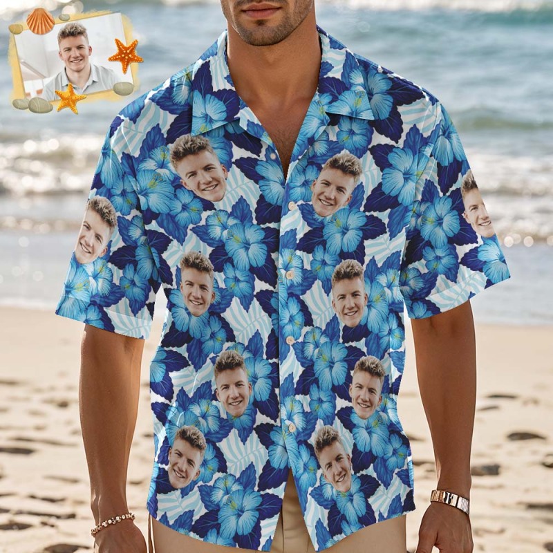 Custom Men Pink Flower Hawaiian Laves And Flowers Hawaiian Shirts Face Shirt Hawaii Pattern Shirt Gift for Summer Vibe Holiday