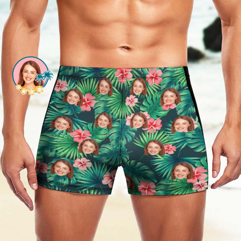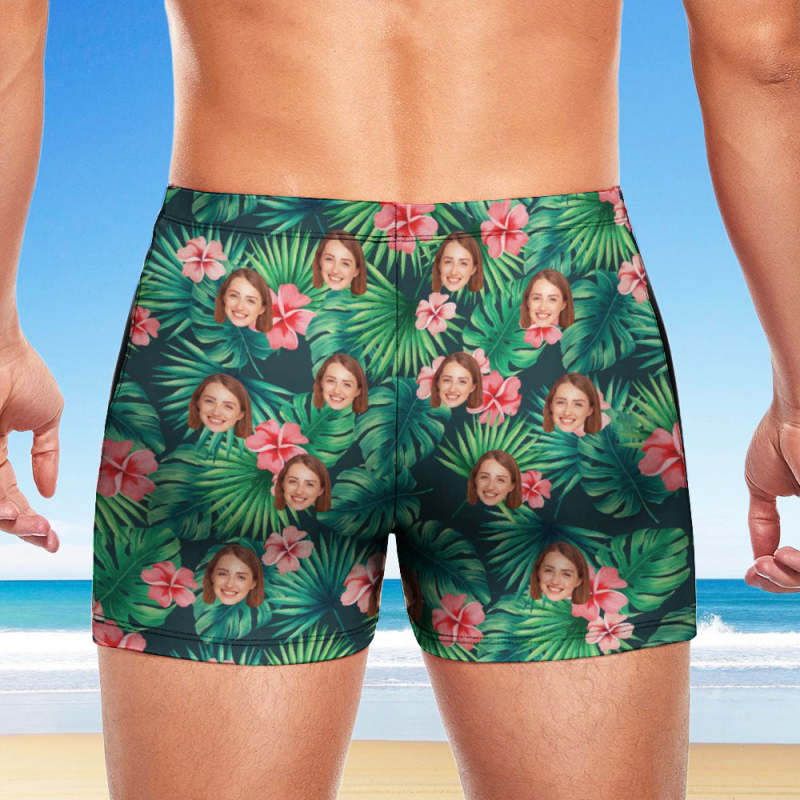 Custom Men's Swim Boxer Shorts, Hawaiian Face Swim Trunks, Peseronalized Swim Briefs - Flowers