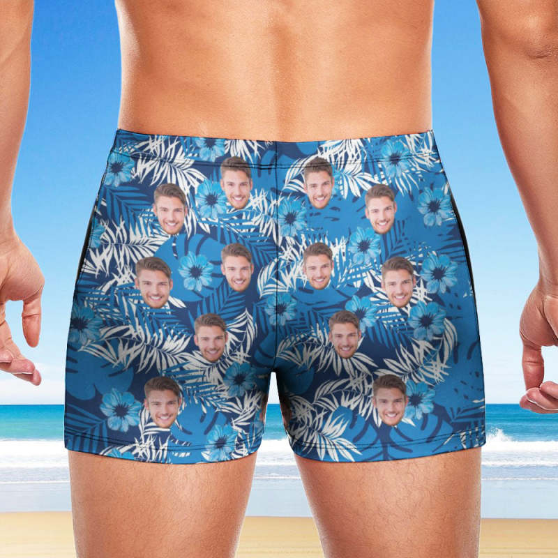 Custom Men's Swim Boxer Shorts, Hawaiian Face Swim Trunks, Peseronalized Swim Briefs - Flowers and leaves