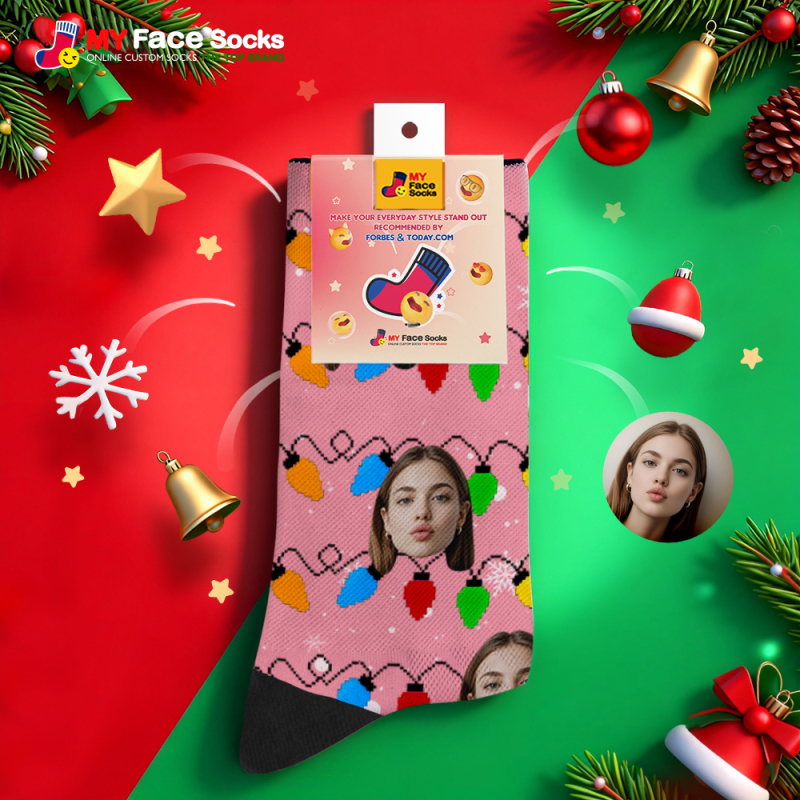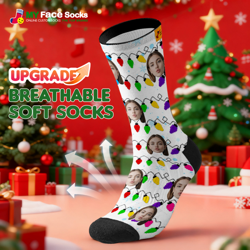Custom Multicolor Christmas Light Socks Personalized Socks Perfect Family Holiday Gift Christmas Socks Gift