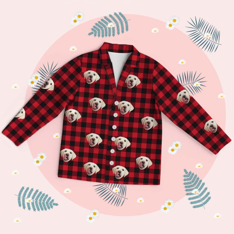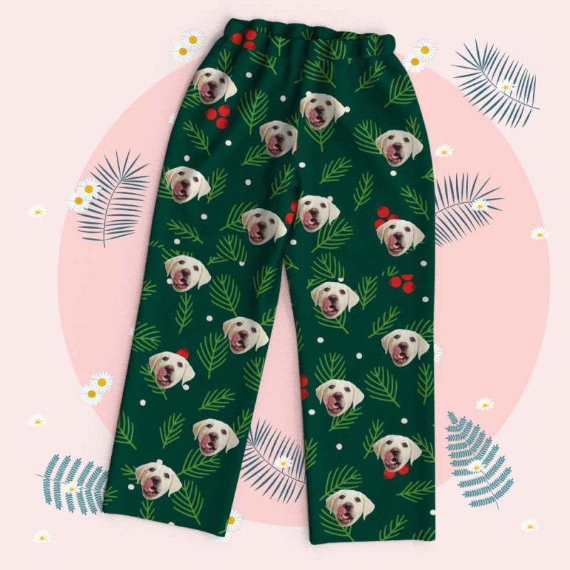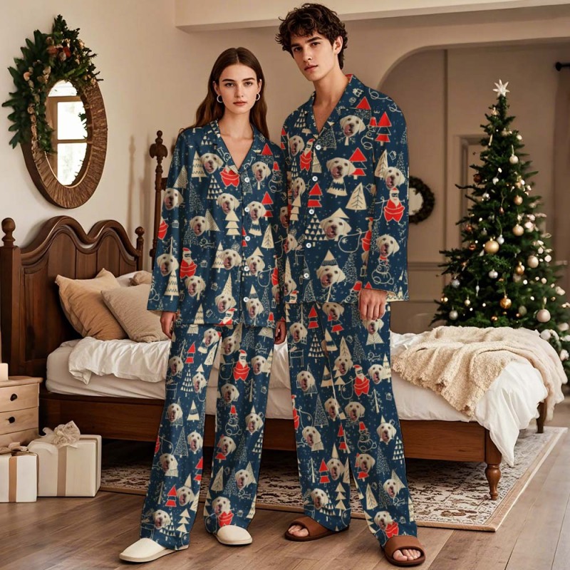 Custom Pet Lover Face Long Sleeve Sleepwear Christmas Face Pajamas Personalized Photo Blue Santa Pajamas Gift