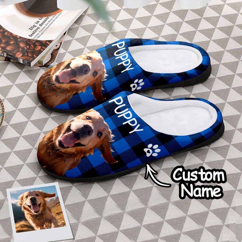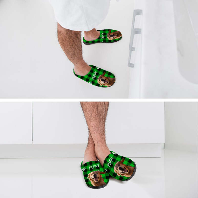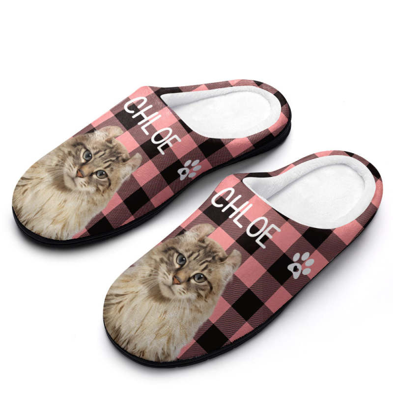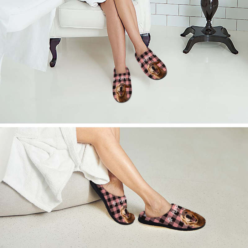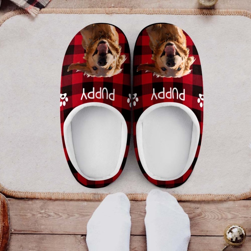 Custom Photo and Name Women Men Slippers With Footprint Personalized Red Casual House Cotton Slippers Christmas Gift For Pet Lover