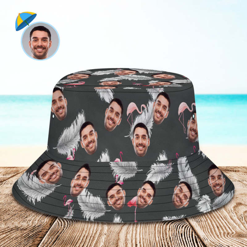Custom Photo Gift Funny Cartoon Flamingo Bucket Hat Hawaiian Fisherman Hat