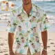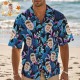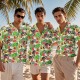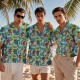 Custom Photo Green Hawaiian Shirt with Palm Leaves Pink Flower Hawaiian Shirt Personalized Tropical Gift