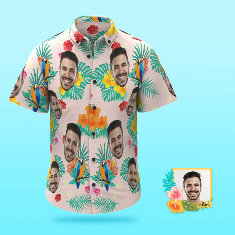 Custom Photo Hawaiian Shirt Beach Vacation Couple Wears Popular All Over Print Hawaiian Beach Shirt Holiday Gift Island Time