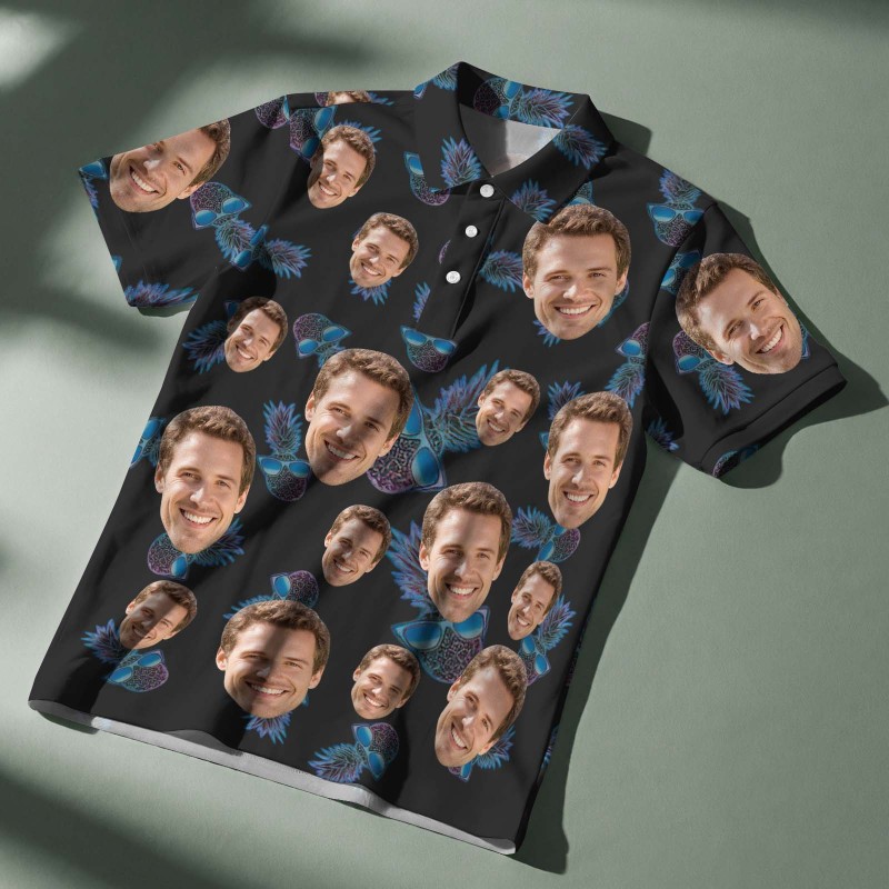 Custom Polo Shirt Best Dad Ever Personalized Face Pineapple Golf Graffiti Polo Shirt Men's Polo Shirt Gift