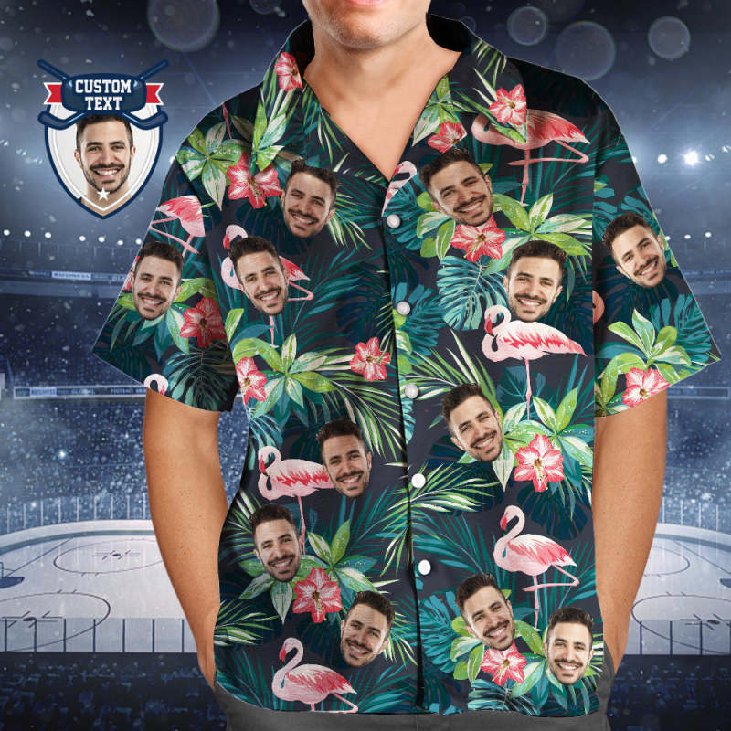 Custom Printed Hawaiian Shirt for Fans Personalized Face and Text Hawaiian Shirt Gift for fans - Flamingo