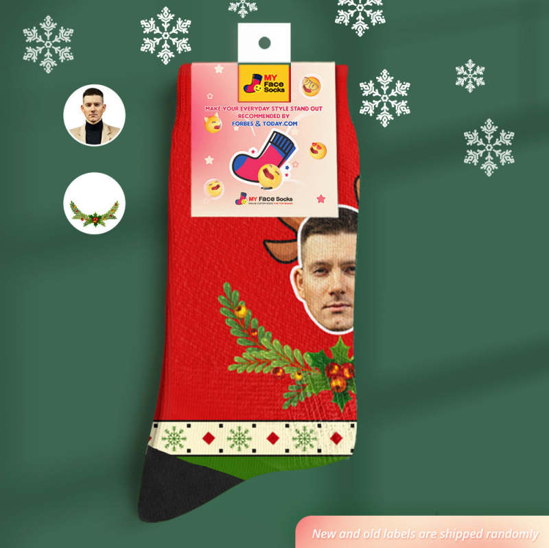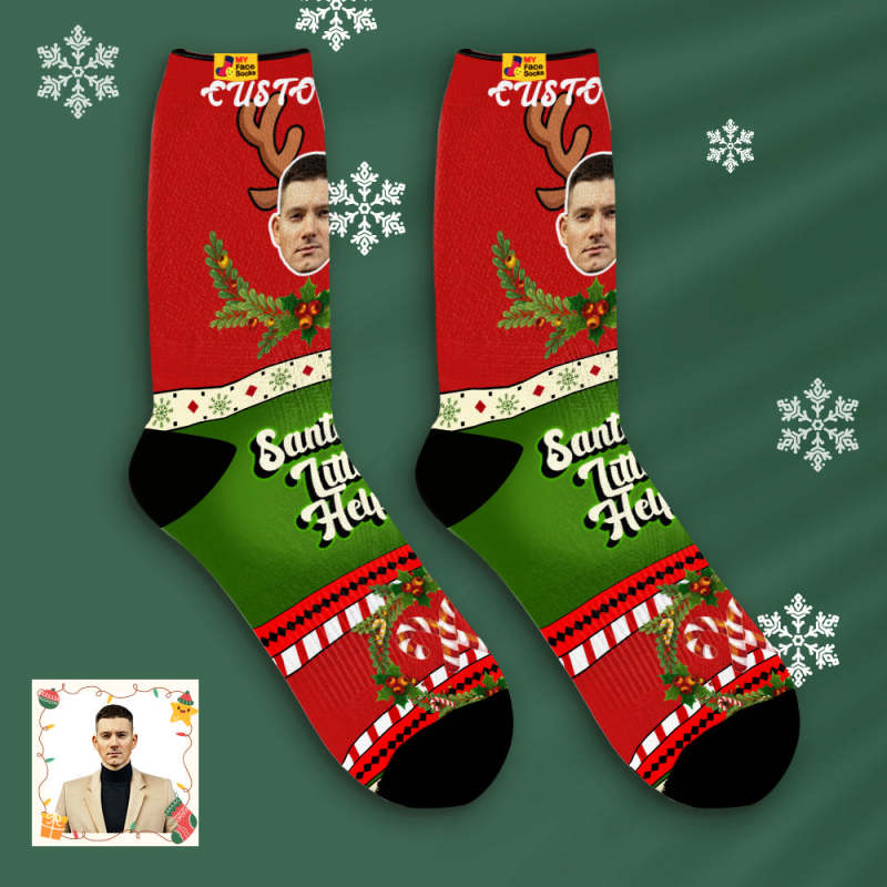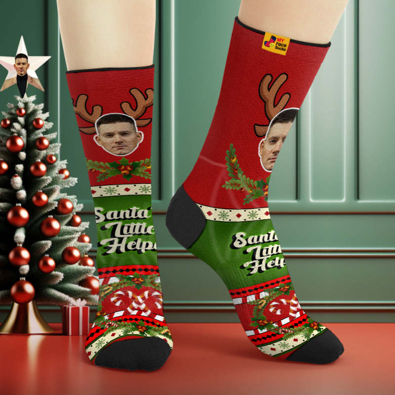 Custom Santas Style Breathable Face Socks Personalized Soft Socks Gifts Christmas Day
