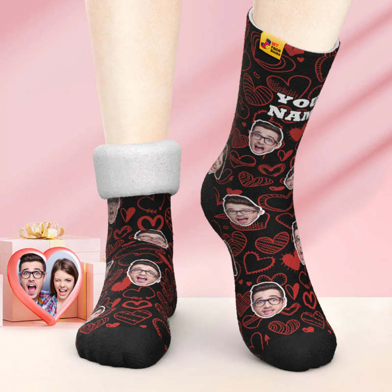 Custom Thick Photo Socks Valentine's Day Gift Warm Socks Fluttering Hearts All-Over Face Socks