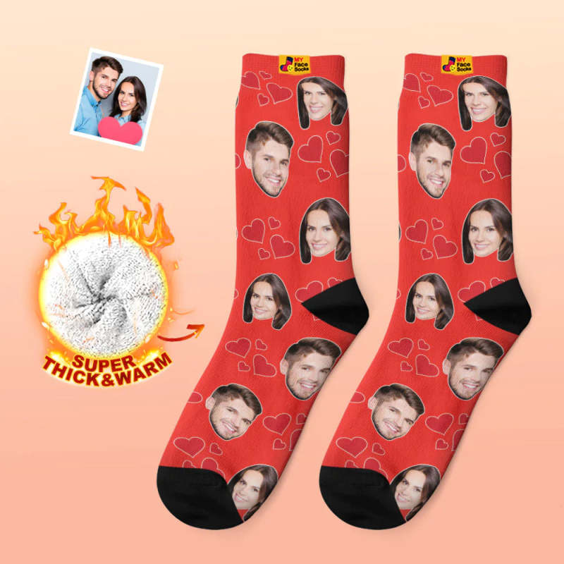 Custom Thick Photo Socks Valentine's Day Gift Warm Socks My Heart Face Socks