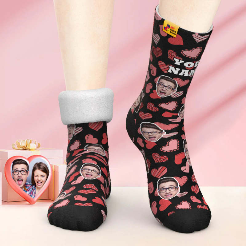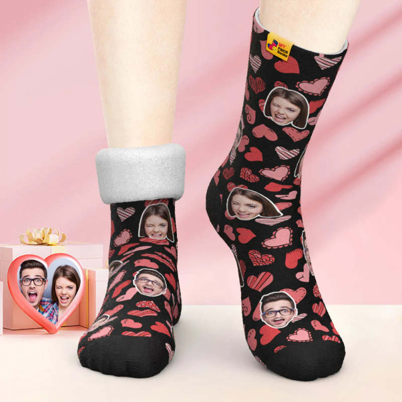 Custom Thick Photo Socks Valentine's Day Gift Warm Socks Various Hearts Face Socks