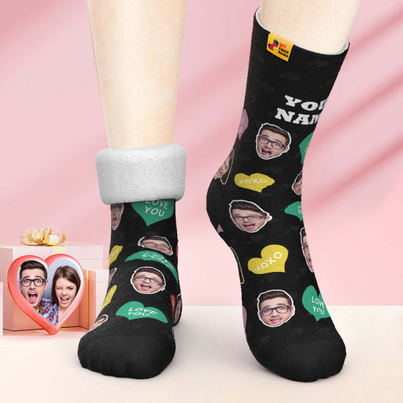 Custom Thick Photo Socks Valentine's Day Gifts Warm Socks Cutie Face Socks