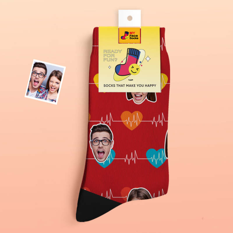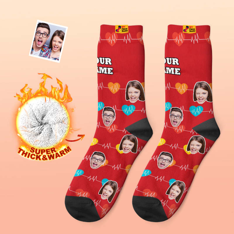 Custom Thick Photo Socks Valentine's Day Gifts Warm Socks Heart Monitor Face Socks